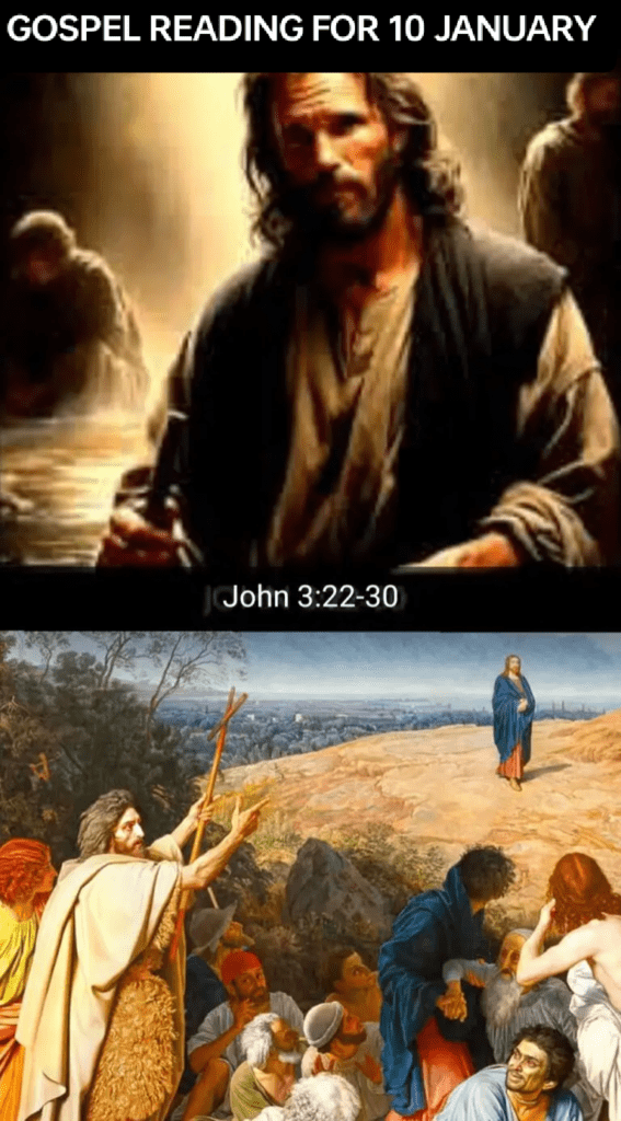 TODAY’S GOSPEL READING 10 JANUARY, 2026 John 3:22-30 Jesus and his disciples went into the region of Judea, where he spent some time with them baptizing. […]