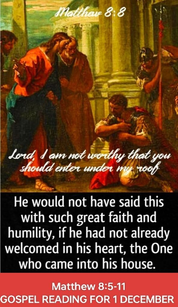 TODAY’S GOSPEL READING 1 DECEMBER, 2025 Matthew 8:5-11 When Jesus had entered Capernaum, a centurion came to Him, pleading with Him, saying, “Lord, my servant is […]