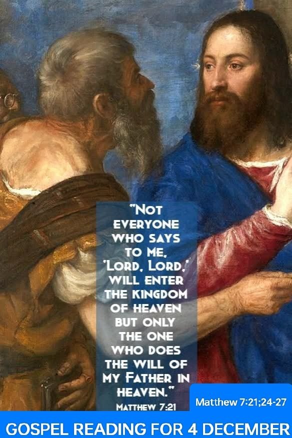 TODAY’S GOSPEL READING 4 DECEMBER, 2025 Matthew 7:21, 24-27 Jesus said to his disciples: “Not everyone who says to me, ‘Lord, Lord,’ will enter the Kingdom […]