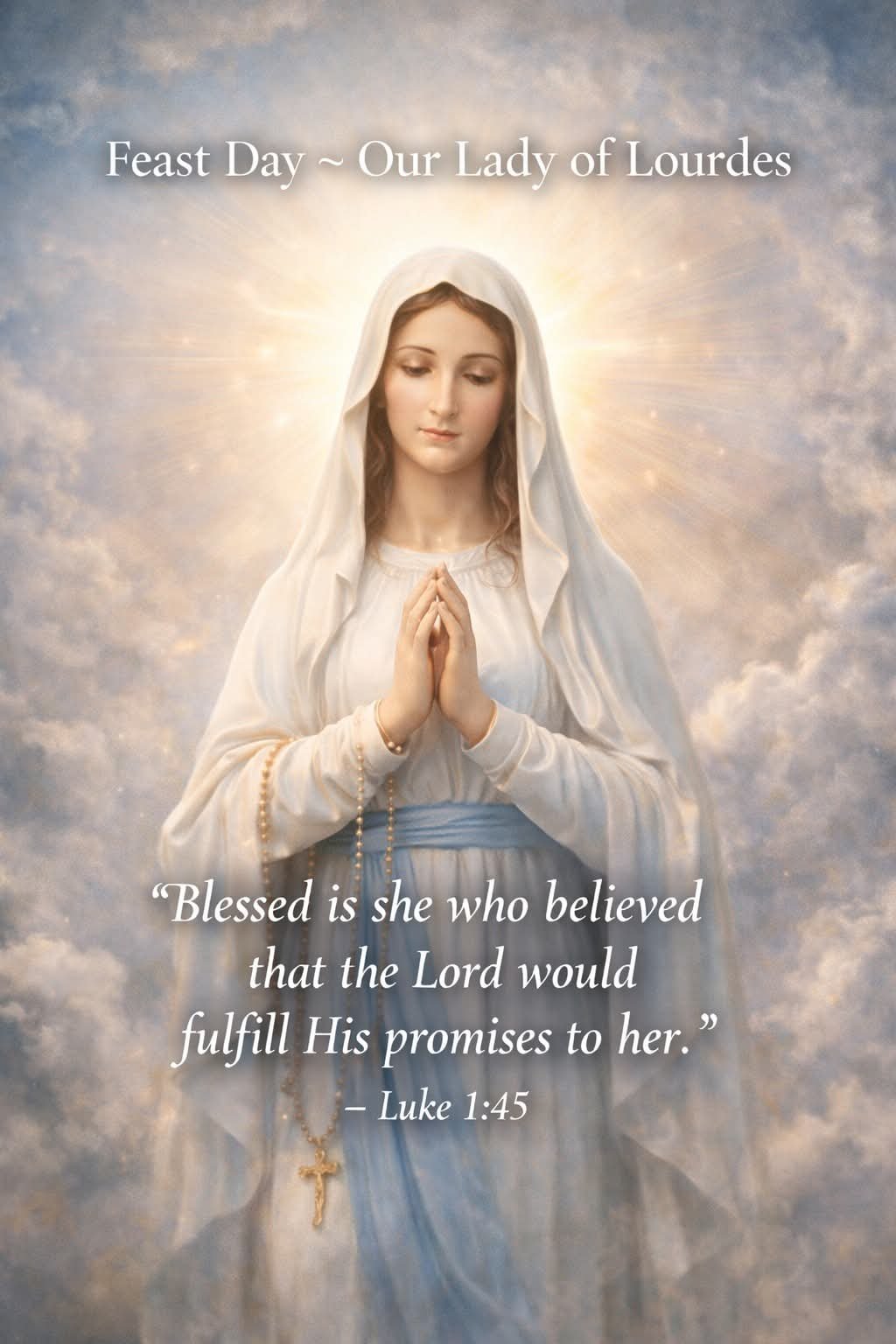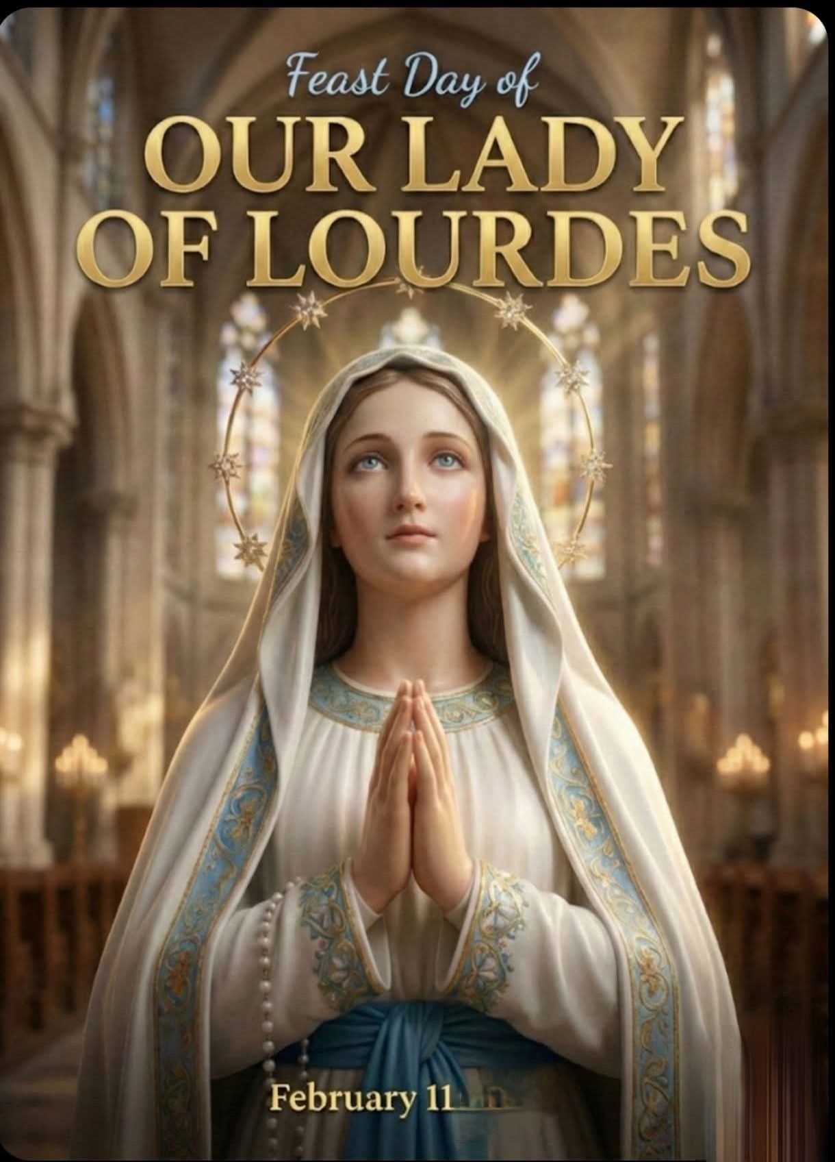 Today, on the feast of Our Lady of Lourdes, we honour the Blessed Mother’s appearance to St. Bernadette in 1858, a powerful reminder of her Love and intercession for us. Let us turn to Mary, Our Mother and Advocate, Seeking her Guidance and Comfort in times of need.