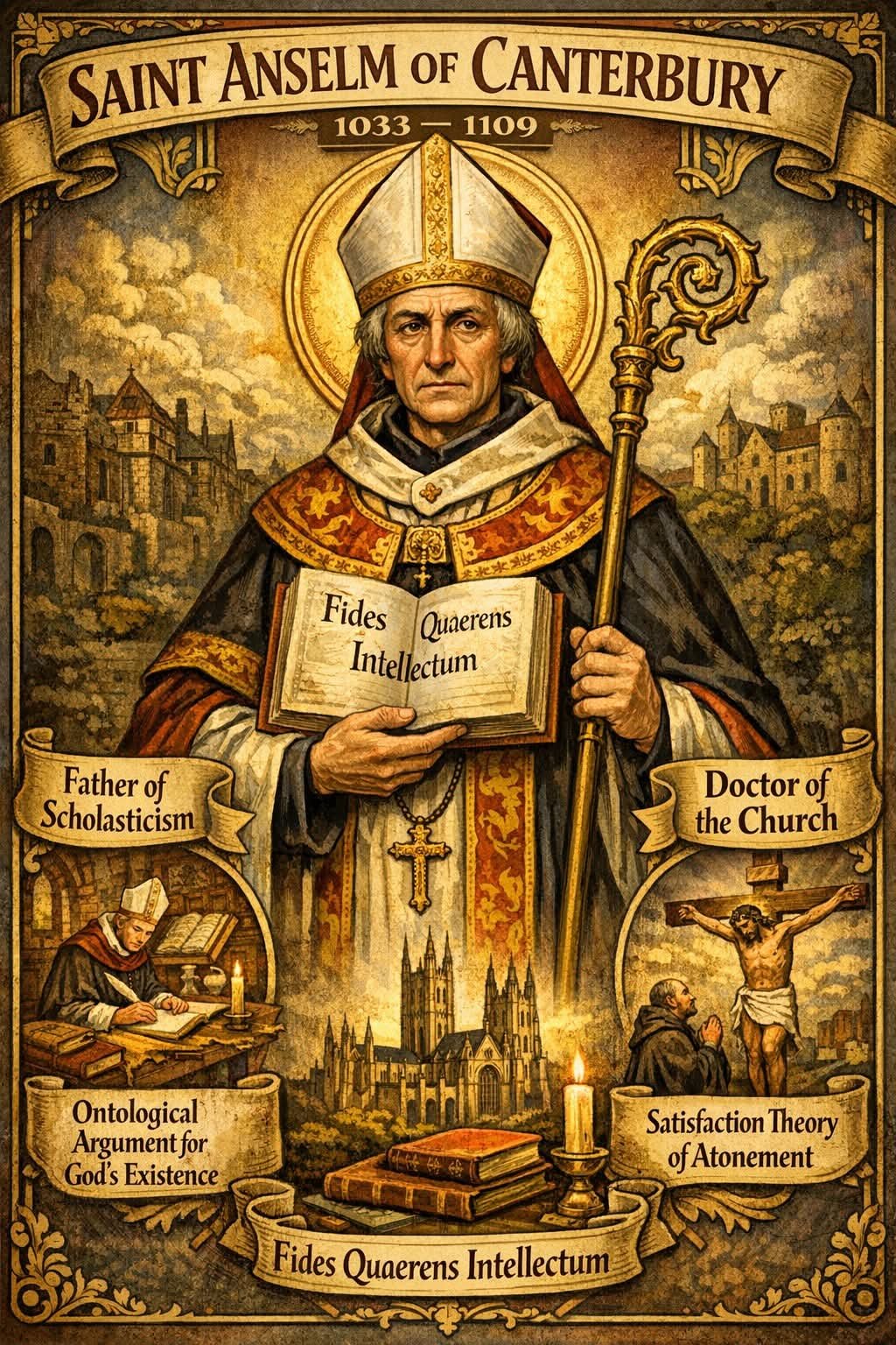 St. Anselm was a great philosopher, theologian, monk, and Archbishop of Canterbury who united deep prayer with clear reasoning. Known as “The Father of Scholastic Theology,” he lived the principle “Faith seeking understanding.”