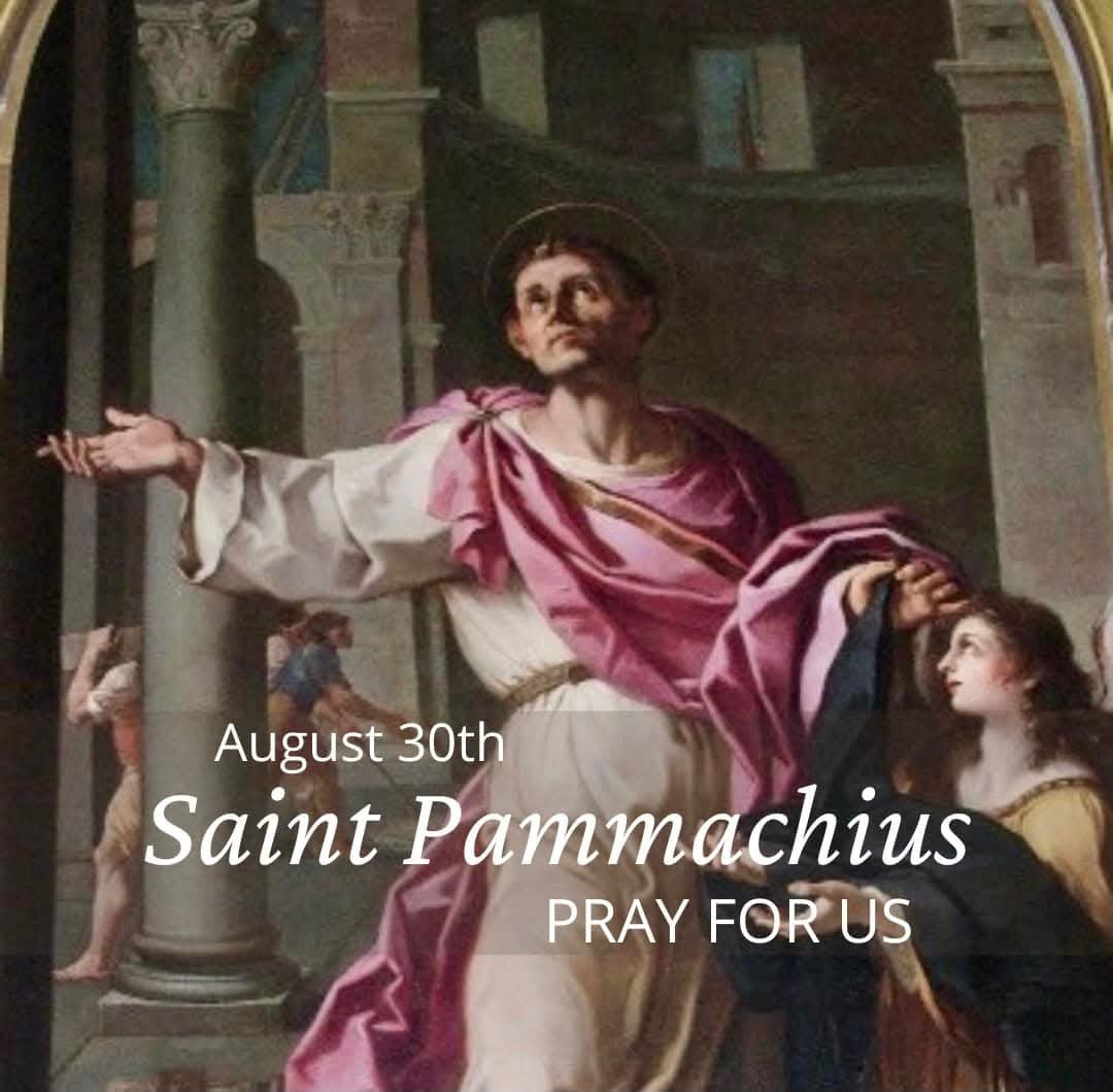 Pammachius was a distinguished Christian layman who lived in the fourth century. As a young student, he had become friends with St. Jerome. They remained friends all their lives and kept an ongoing correspondence. His wife was Paulina, the second daughter of St. Paula, another good friend of Saint Jerome. When Paulina died in 397, Saint Jerome and Saint Paulinus of Nola wrote deeply moving letters filled with sympathy, support and the promise of prayers.