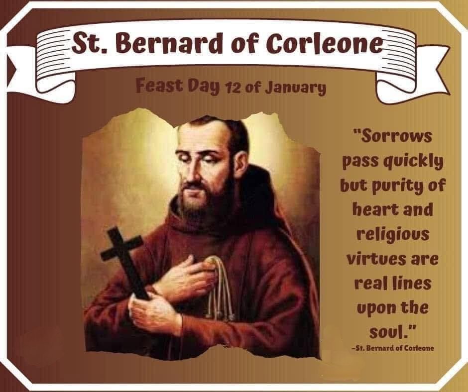 He passed away on 12 January 1667, leaving behind a legacy of deep faith and humble devotion to God. In recognition of his exceptional holiness and virtuous life, Pope Clement XIII declared Saint Bernard of Corleone venerable on 2 February 1762. Later, on 15 May 1768, he was beatified by Pope Clement XIII.