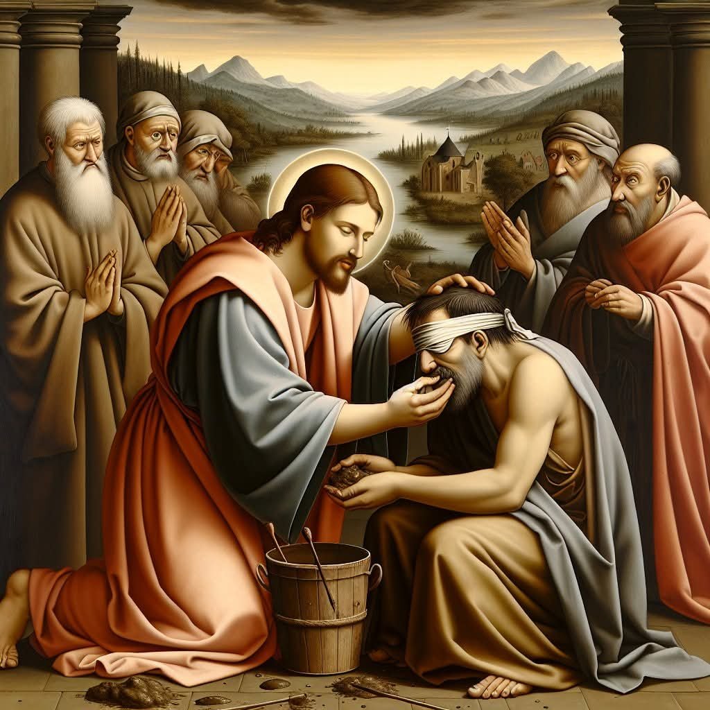 As Jesus passed by he saw a man blind from birth. His disciples asked him, “Rabbi, who sinned, this man or his parents, that he was born blind?” Jesus answered, “Neither he nor his parents sinned; it is so that the works of God might be made visible through him. We have to do the works of the one who sent me while it is day. Night is coming when no one can work. While I am in the world, I am the light of the world.” When he had said this, he spat on the ground and made clay with the saliva, and smeared the clay on his eyes, and said to him, “Go wash in the Pool of Siloam” —which means Sent—. So he went and washed, and came back able to see.