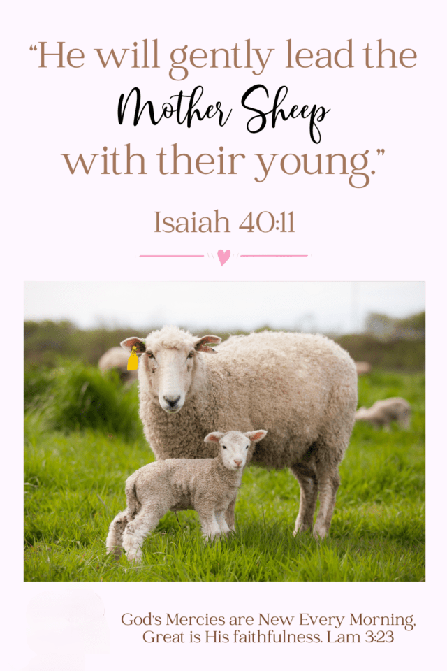 He will feed His flock like a Shepherd. He will carry the lambs in His arms, holding them close to His heart. He will gently lead the mother sheep with their young. – Isaiah 40:11