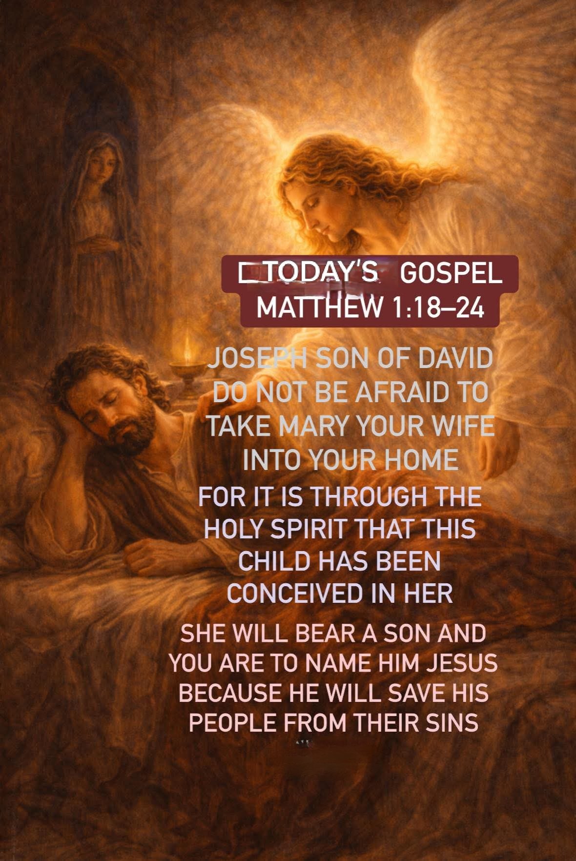 Today’s Gospel Mt 1:18-24 – This is how the birth of Jesus Christ came about.