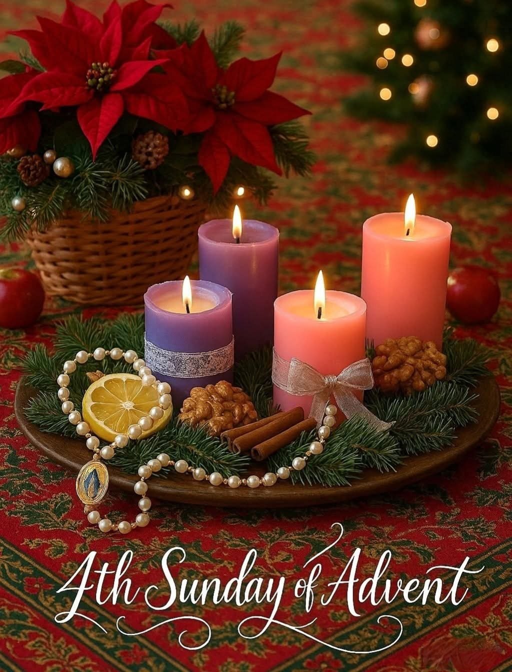 On this 4th Sunday of Advent, light all three violet candles and the rose candle on your Advent wreath and pray that the light of Christ will enter your heart so that you may share the warmth of God’s love with those you meet.