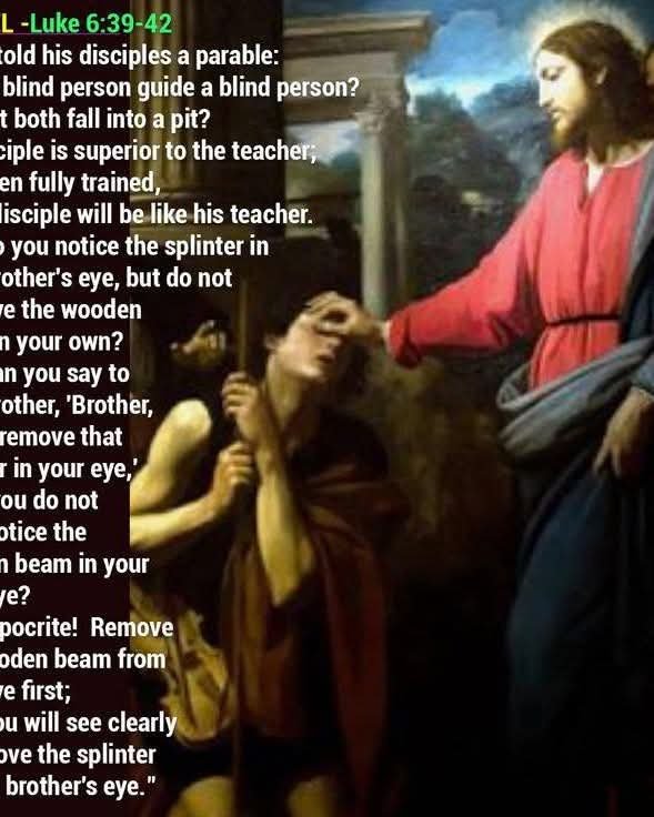 Jesus invites us to cultivate humility and self-awareness before attempting to correct others. It is easy to notice the faults of those around us while remaining blind to our own weaknesses. By using vivid images of the blind leading the blind and the log versus the speck, He reminds us that true guidance and healthy relationships begin with an honest look within. When we allow God’s light to expose our shortcomings, we grow in wisdom, compassion, and authenticity, enabling us to help others without judgment or hypocrisy.