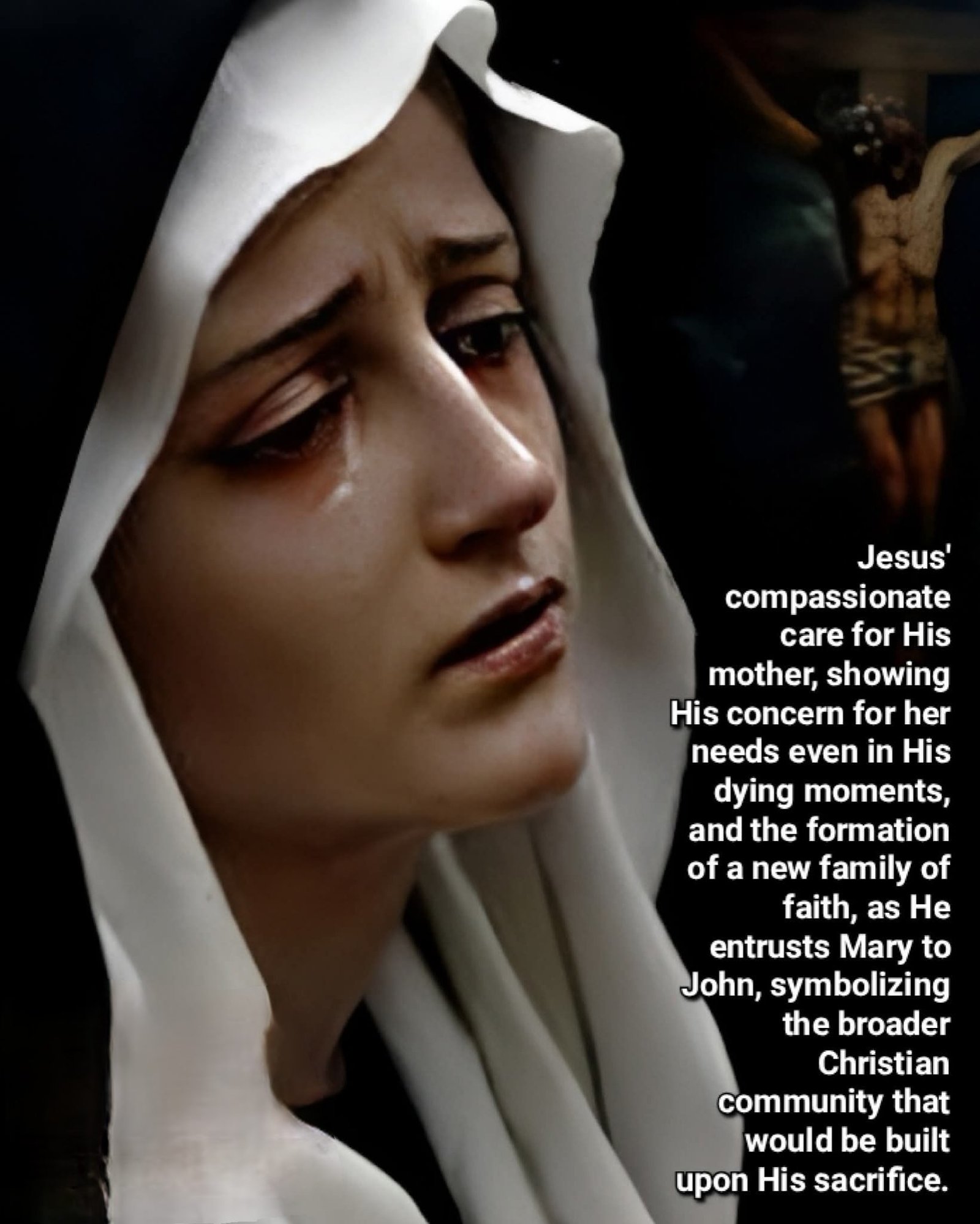 On the part of Jesus, due to His great love for His mother, He entrusted John the Disciple, whom He loved, to her and she to John. That is why we call Mary the Mother of God, our spiritual mother too, who is not tired of loving and leading us back to her Son.