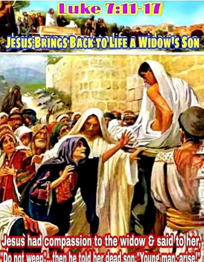 In this passage, Jesus meets a grieving widow whose only son has died. Moved with deep compassion, He touches the bier and restores the young man to life, giving him back to his mother. This moment reveals the tender heart of Christ, who not only has the power to conquer death but also enters into our pain with mercy. It reminds us that no situation is beyond His reach and no sorrow too deep for His love. His presence brings life where there is despair, and hope where there is mourning.