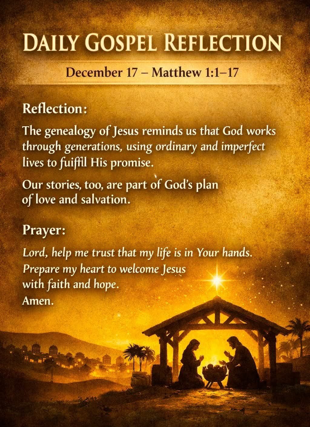 The genealogy of Jesus reminds us that God works through generations, using ordinary and imperfect lives to fulfill His promise. Our stories, too, are part of God’s plan of love and salvation.
