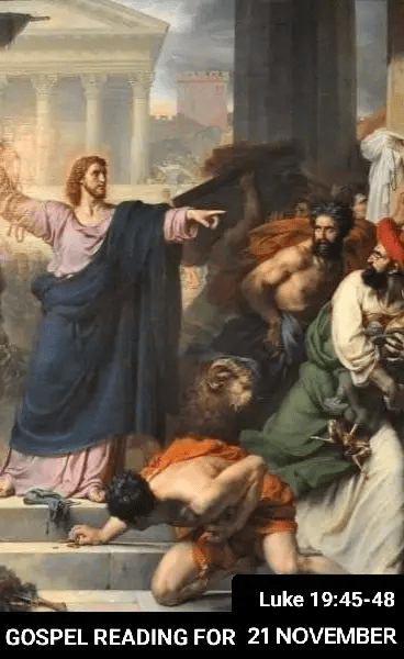 Jesus enters the Temple and drives out those who turned a sacred place into a marketplace. His bold action reveals His deep zeal for the purity of worship and His desire that God’s house remain a place of prayer. Yet even as He teaches daily in the Temple, the leaders reject Him, fearing the truth He speaks. This passage invites us to look within: are there “tables” in our hearts that need to be overturned—distractions, habits, or attitudes that crowd out prayer? Jesus desires to cleanse and renew us so that our inner life becomes a living temple where God is honoured.
