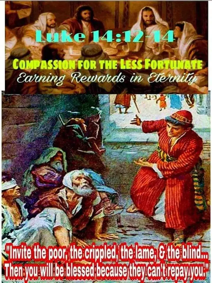 In this passage, Jesus challenges the social norms of giving and receiving. He calls His followers to invite not those who can repay, but the poor, the crippled, the lame, and the blind. This teaching reveals the heart of God—a heart that gives freely, without expectation of return. True generosity mirrors divine love, which is selfless, inclusive, and compassionate. Jesus reminds us that our reward does not come from human recognition but from the eternal blessing of God.